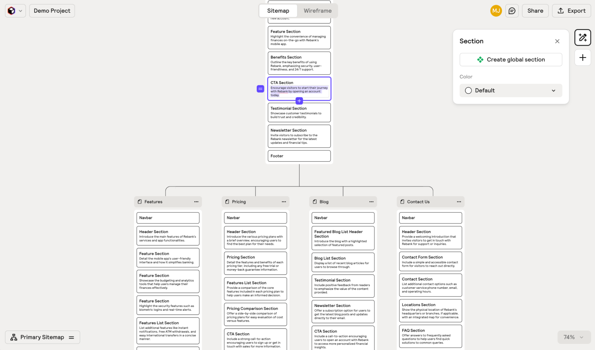 Relume est un outil innovant qui utilise l'intelligence artificielle pour générer automatiquement des arborescences de sites web. En décrivant simplement votre projet, l'outil propose une structure complète que vous pouvez ensuite affiner.