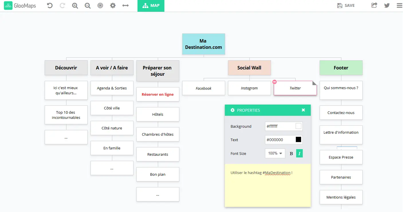 GlooMaps se distingue par sa simplicité d'utilisation. Cet outil gratuit permet de créer rapidement une arborescence sans avoir besoin de créer un compte.