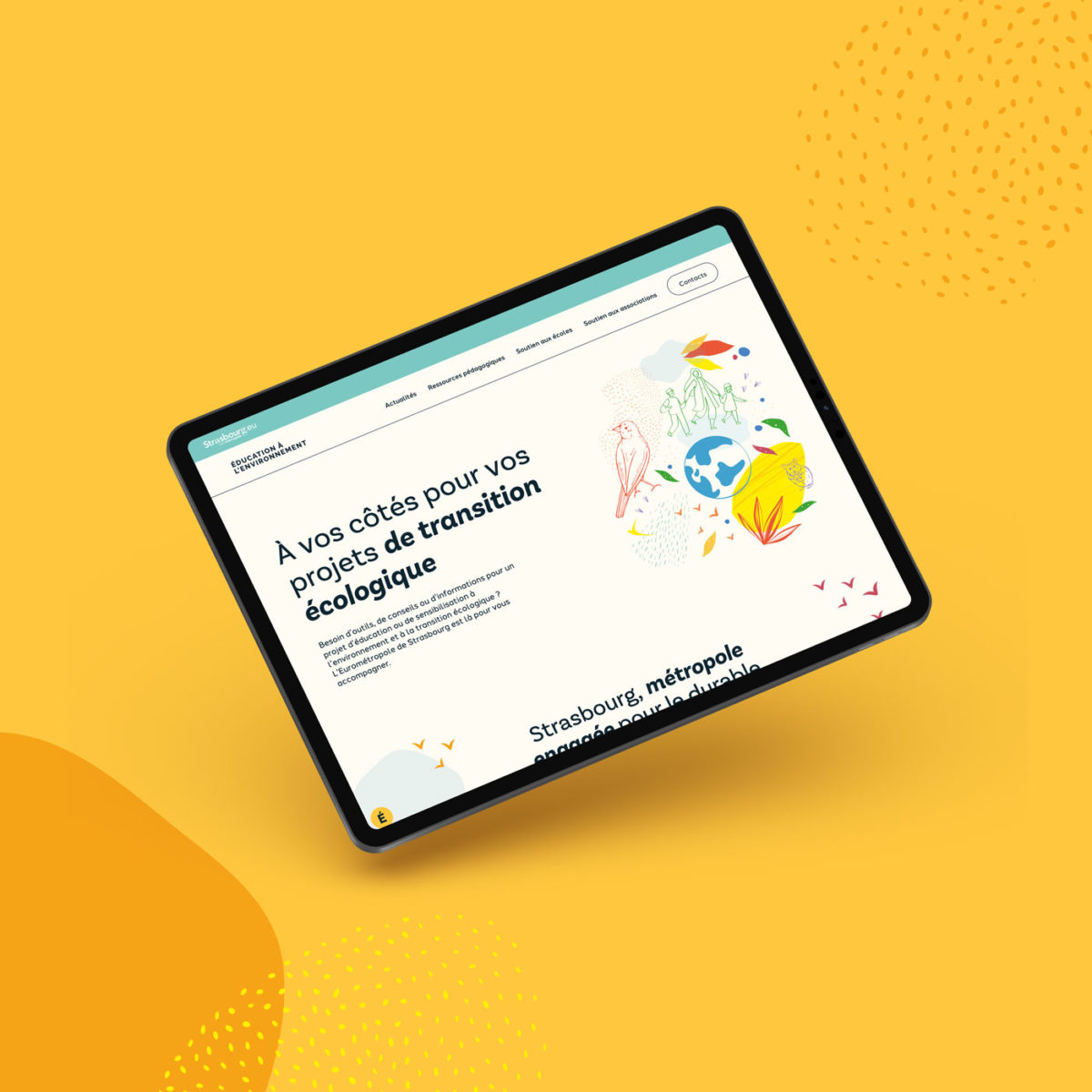 Conception graphique et technique d'un site web dédié aux projets de sensibilisation à la transition écologique. L'Eurométropole de Strasbourg accompagne les écoles et associations engagées, avec une mise à disposition d'outils et ressources pédagogiques.