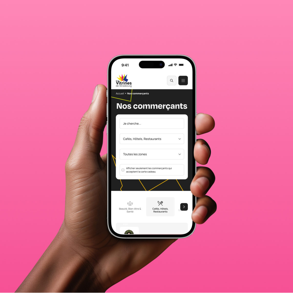 Refonte graphique et technique du site web des Vitrines de Strasbourg, association des commerçants de la ville depuis plus de 60 ans. Ce site a pour vocation de fédérer et promouvoir les commerçants locaux via un annuaire géolocalisé et un espace dédié aux adhérents.